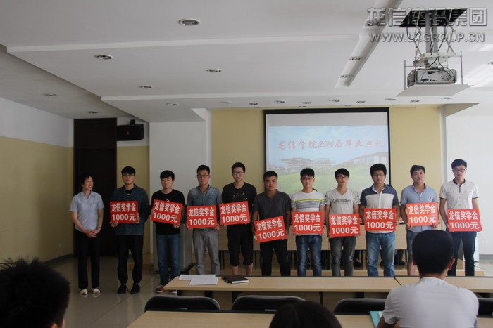 首先,卞勤華主席宣讀了龍信集團獎學金、助學金表彰文件,黃麗英為孫曉東等10名龍信獎學金獲得者和靳招利等10名龍信助學金獲得者頒獎。孫校長和卞主席為畢業(yè)生代表頒發(fā)畢業(yè)證書。