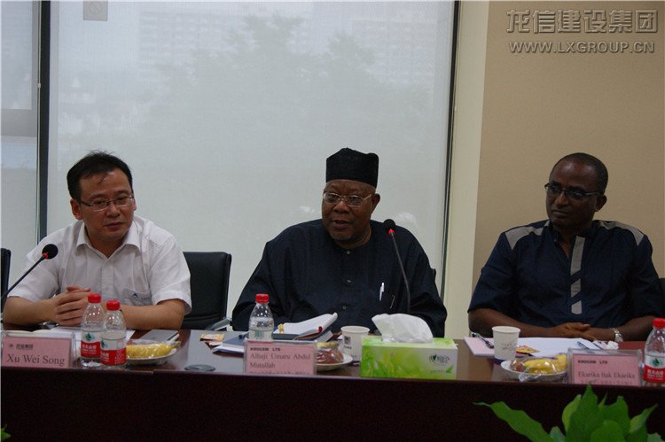 2015年6月15日,以哈吉.烏瑪魯.阿卜杜勒.穆塔拉布董事長為首的尼日利亞KROCEM有限公司代表團蒞臨我集團參觀考察。集團董事長陳祖新、總經(jīng)理唐愛東、副總經(jīng)理何咸軍、海外公司總經(jīng)理徐巍松等領(lǐng)導(dǎo)熱情接待。