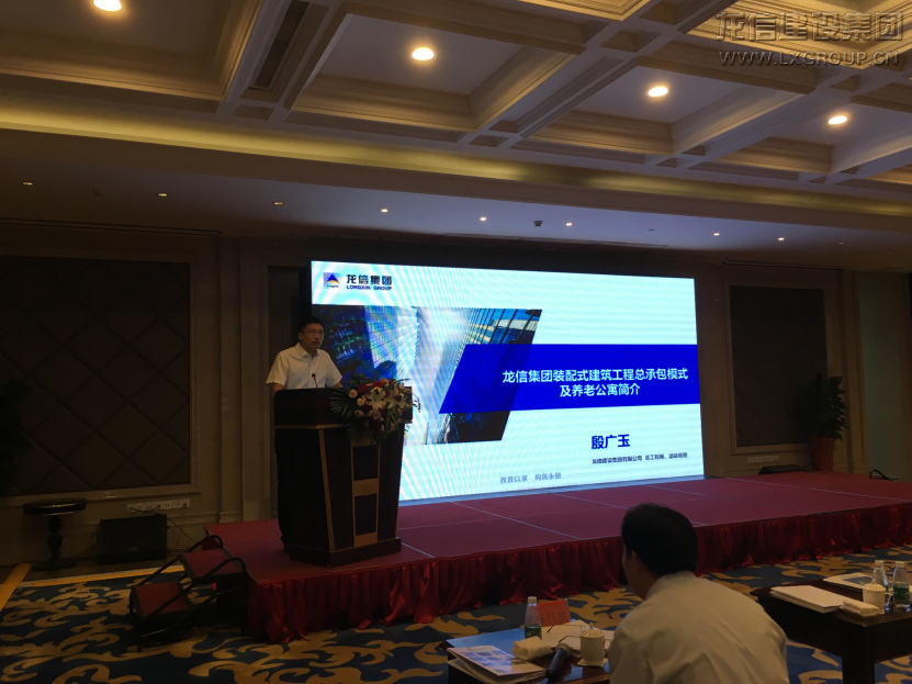 6月14日上午,會(huì)議由中國(guó)土木工程學(xué)會(huì)住宅工程指導(dǎo)工作委員會(huì)理事長(zhǎng)張軍主持。郭允沖部長(zhǎng)致辭并分析了國(guó)內(nèi)外裝配式建筑的現(xiàn)狀和未來(lái)發(fā)展方向。王華理事長(zhǎng)對(duì)裝配式建筑的發(fā)展歷程和技術(shù)體系做了深入分析。龍信集團(tuán)總工程師殷廣玉作了題為“龍信集團(tuán)裝配式建筑與養(yǎng)老住宅介紹”的匯報(bào),詳細(xì)介紹了龍信產(chǎn)業(yè)化發(fā)展歷程和技術(shù)優(yōu)勢(shì),并就南通人才公寓項(xiàng)目和海門樂(lè)頤薈老年公寓項(xiàng)目為實(shí)例講述了龍信集團(tuán)裝配式剪力墻及框架結(jié)構(gòu)設(shè)計(jì)、施工的先進(jìn)性并介紹了龍信老年公寓讓老者“養(yǎng)、尊、處、優(yōu)”的社區(qū)養(yǎng)老運(yùn)營(yíng)模式。